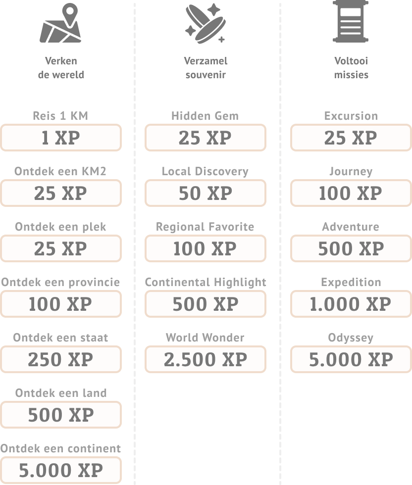 Je prestaties worden gemeten in ervaringspunten (XP). Je verdient deze door: